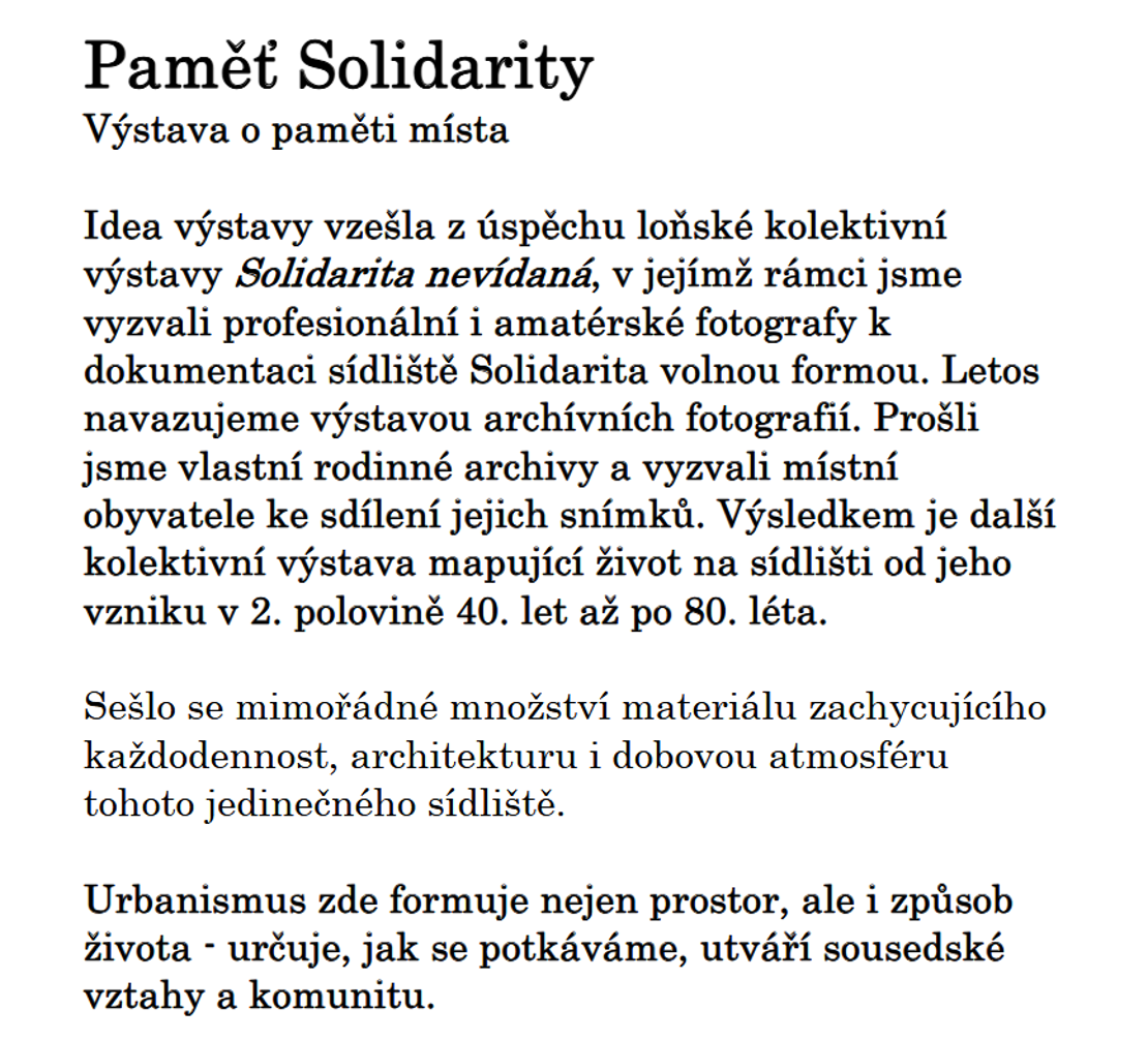 VÝSTAVA PAMĚŤ SOLIDARITY